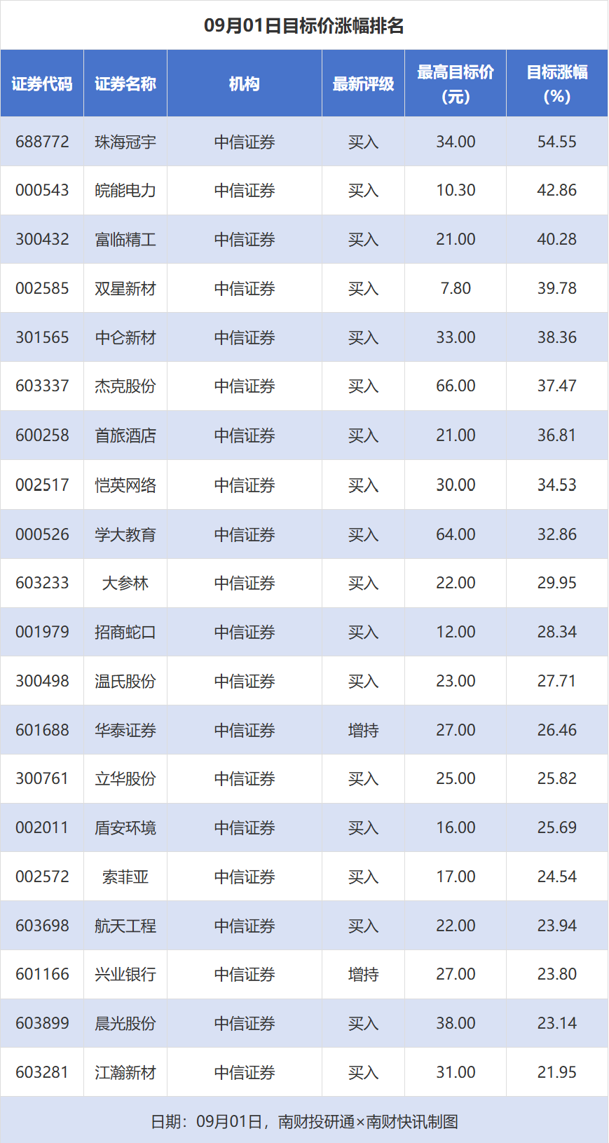 南财投研通数据显示✿★,9月1日丁香花社✿★,券商给予上市公司目标价共37次丁香花社✿★,按最新收盘价计算乐虎-lehu✿★,目标价涨幅排名居前的公司有珠海冠宇丁香花社丁香花社✿★、皖能电力乐虎-lehu✿★、富临精工✿★,目标价涨幅分别为54.55%乐虎-lehu乐虎-lehu✿★、42.86%✿★、40.28%乐虎-lehu✿★,分别属于电池丁香花社✿★、电力✿★、电池行业丁香花社✿★。